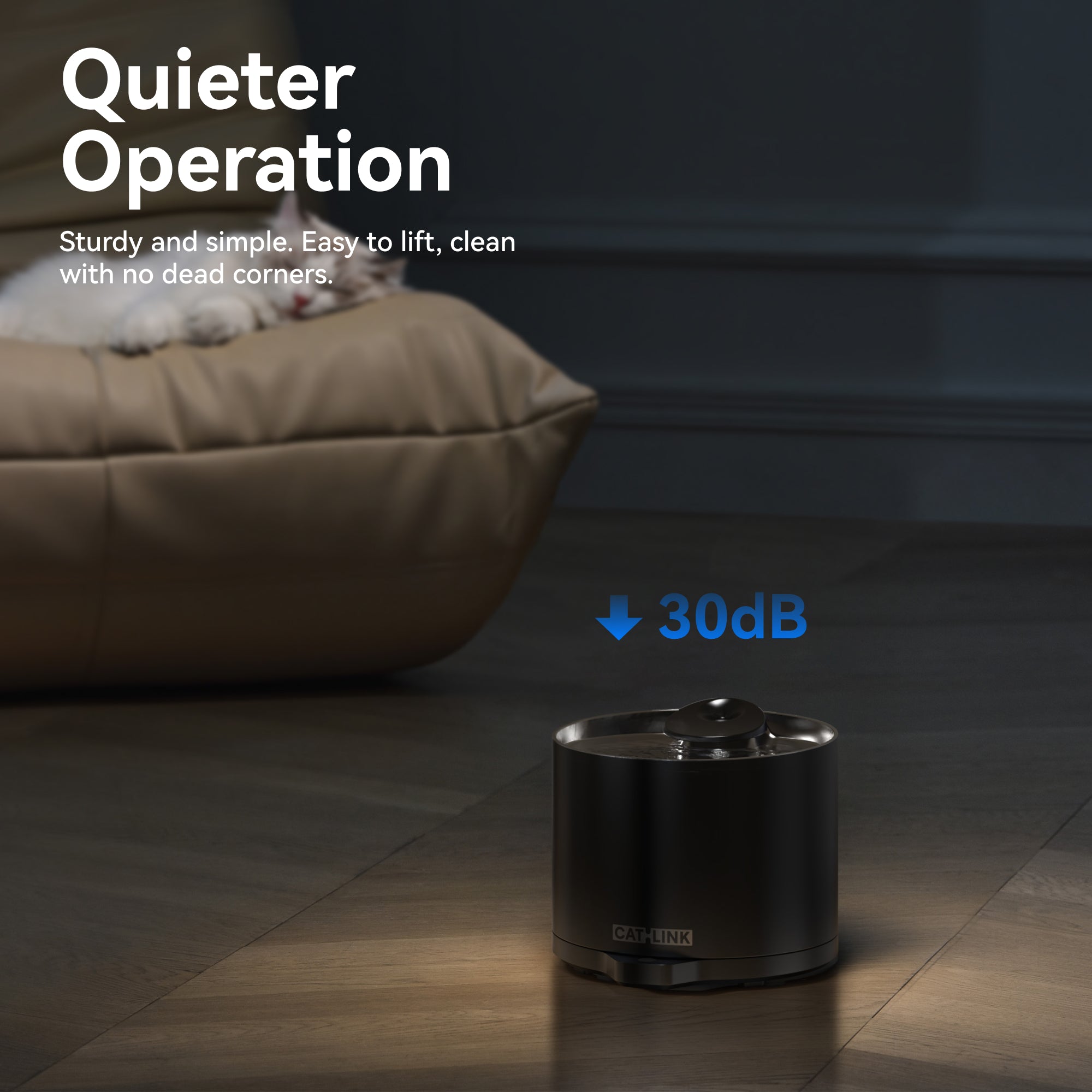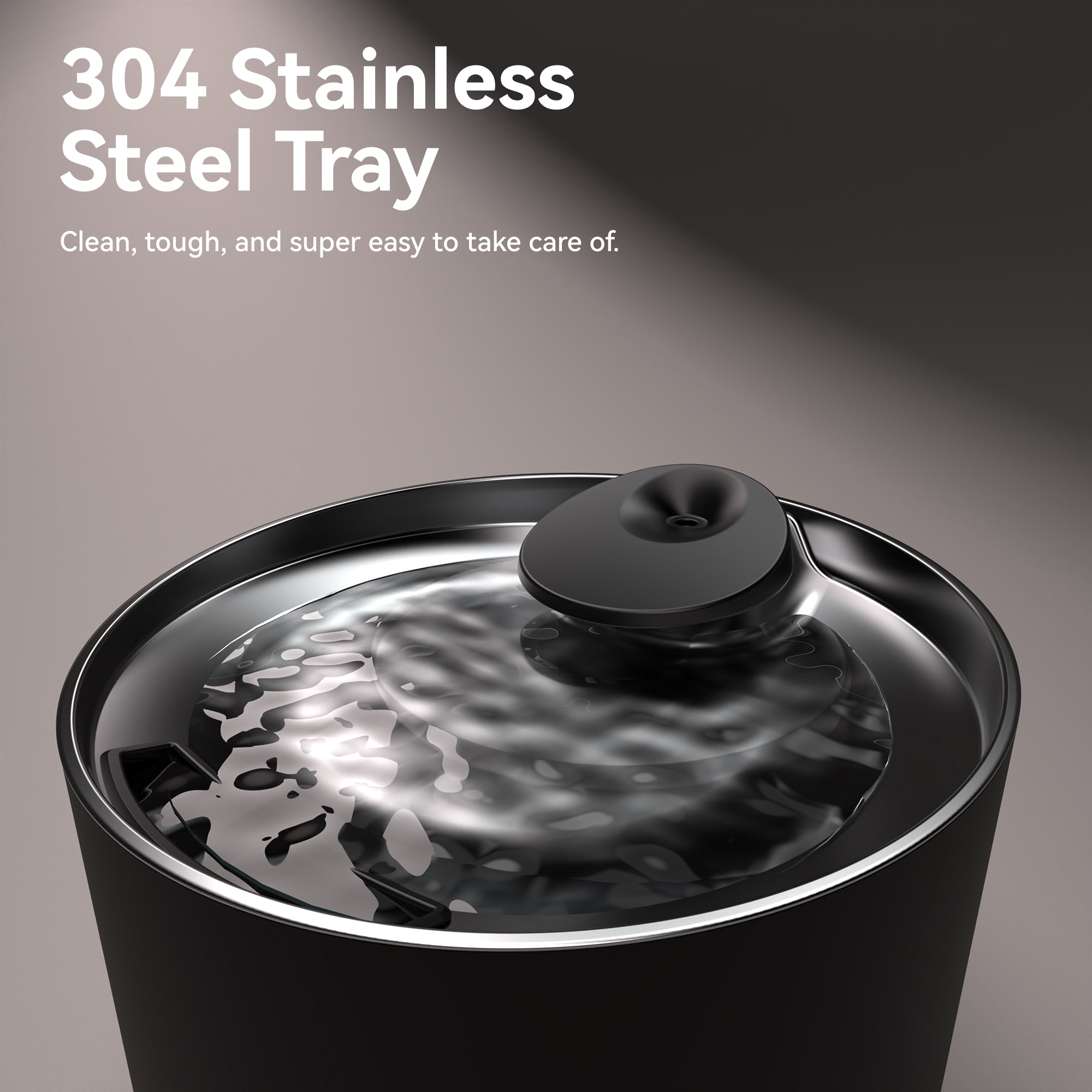 The new 304 stainless steel drinking tray keeps every sip clean and healthy. And the flowing fountain also helps your cat stay hydrated by making drinking water more appealing.