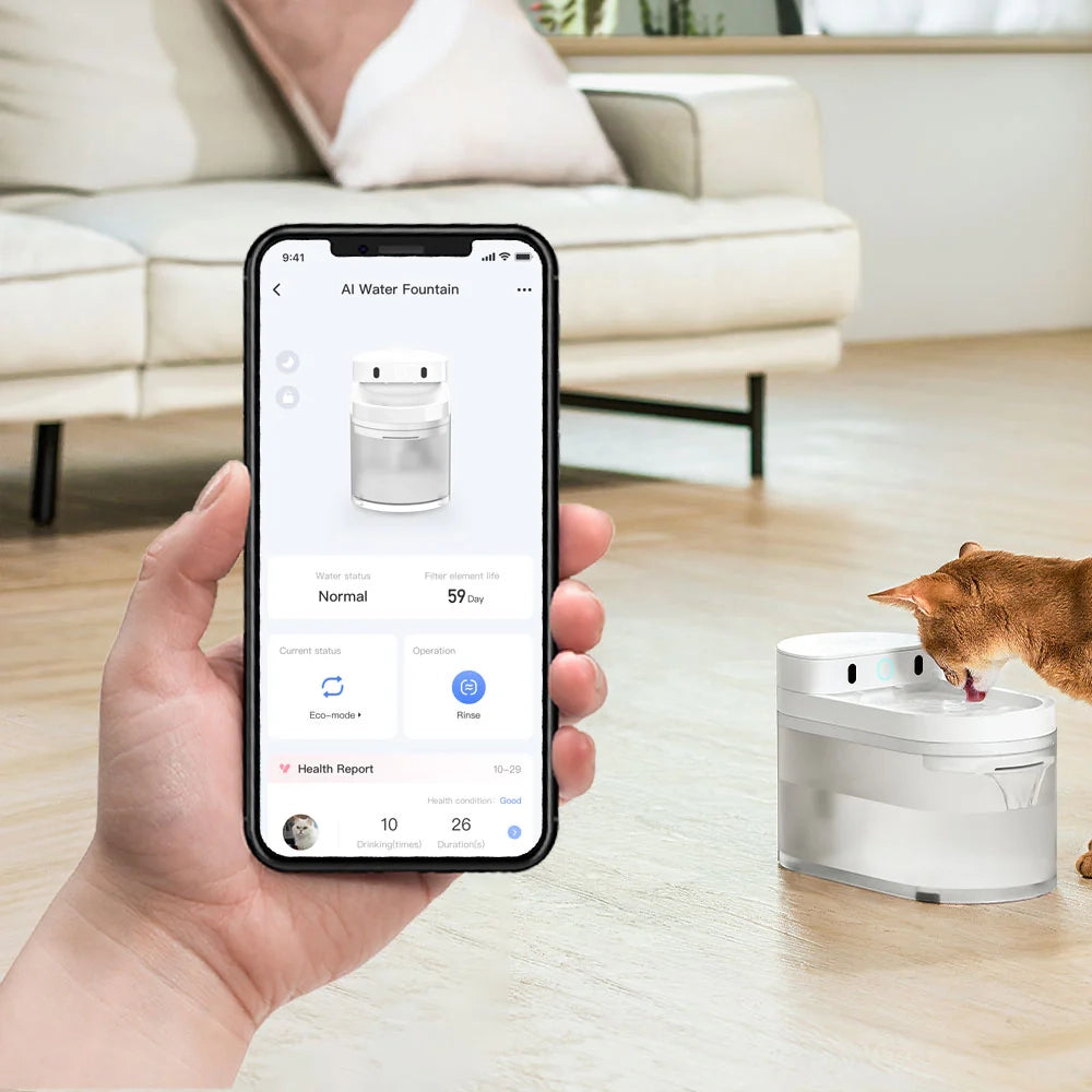 Observes cat's drinking frequency, volume, and duration with CATLINK APP. Reminder of water shortage and filter status.